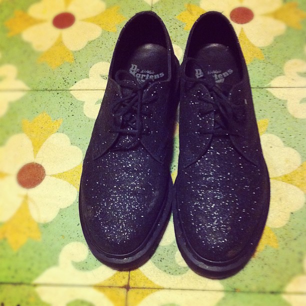 I have to say, I’m really glad Dr. Martens are having their comeback. I absolutely LOVE the low-top black glitter pair the husb got me for my birthday. But back in high school, it was all about my metallic lavender boots. It’s begging to be said: You always remember your first. I could go for a ’90s-channeling red velvet or leopard print pair these days.