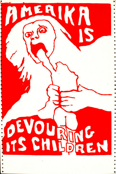 The End the Air War and Vacaville posters came out of the East Bay Media Collective in the early 1970s. The artists were Doug Lawler (End the Air War) and Peggy White (Vacaville).
