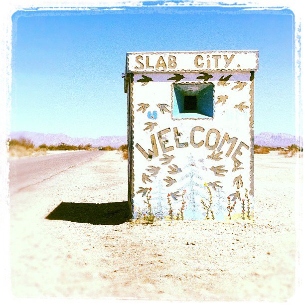 Salvation Mountain also serves as an official entrance to Slab City- a community of artists, squatters, and general outsiders occupying abandoned the Fort Dunlap World War II Marine training base.