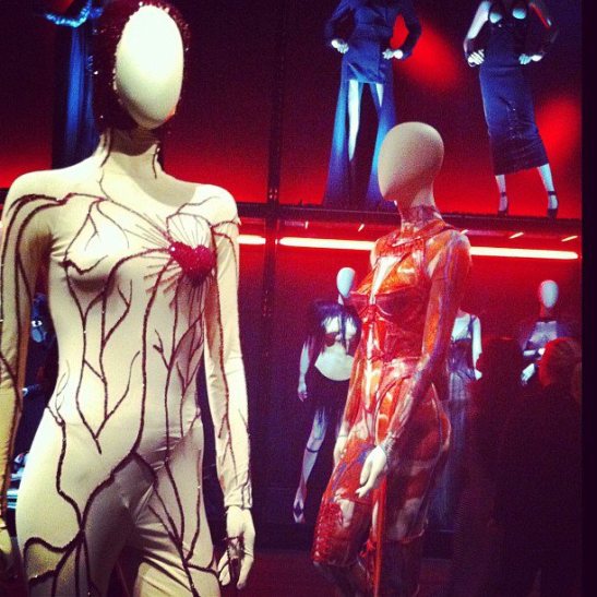 I took some photos when I went to the exhibit with my chum Molly last week. You can see the faces that I’m talking about in some of ’em, but it really doesn’t capture their moving mannerisms. Also, I didn’t snap any photos of the Madonna cone bra corset, which is obvs a must-see.