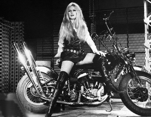 Anyway, this got me thinking about the inherent sexiness of motorcycles and allure of biker gangs in general. What is it? Check out these babes on bikes… Georgia O’Keeffe, Brigit Bardot, Francoise Hardy… it really doesn’t get any better.