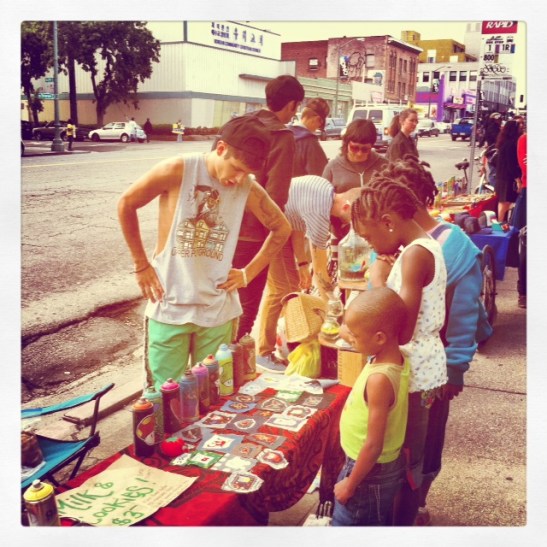 I went to OAM for the gallery experience. From what I understood, there are that 20 galleries who open up their spaces and invite the community to check out their exhibits for free. It turned out that the “gallery” aspect of the art walk was by far the worst part- largely due to the extreme overcrowding of the buildings. How can anyone enjoy (or criticize) a work of art when stuffed into a tiny room with hundreds of sweaty, drunk hipsters? Navigating my way OUT of the galleries was even worse- not unlike being in the very front row at a Refused reunion concert, then realizing you have to pee. You can try as hard as you want. You can tell people, “No, seriously, I’m trying to leave. Please just move your ass.” but pushing past people is still a ridiculous struggle. One that I’ll gladly take at a punk show, and I’d prefer to skip at a gallery event. I’m gonna just come out and say it: most of what I saw in the galleries was also seen-it-a-billion-times college-art-student type material. No gracias.