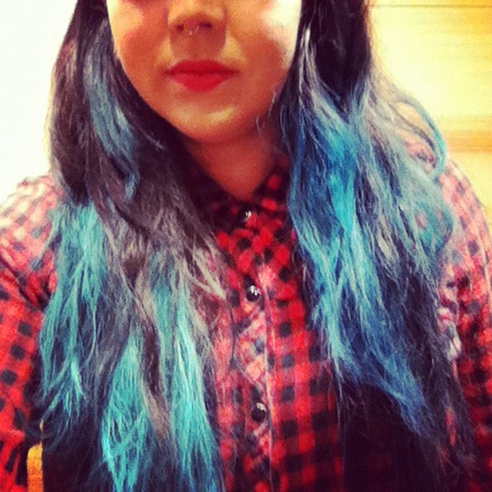 Semi-out-of-nowhere, Aislinn and I decided to rock blue chalk from Blick in our hair on Friday.