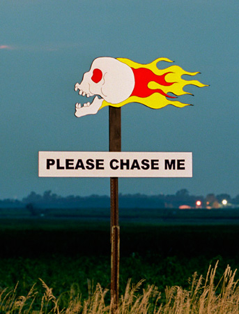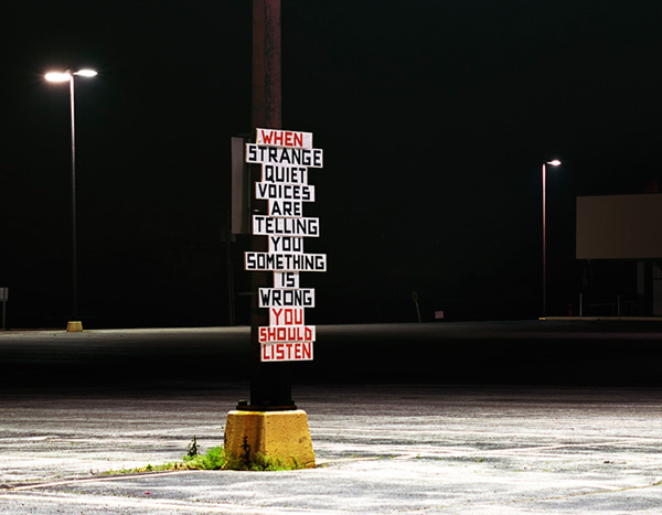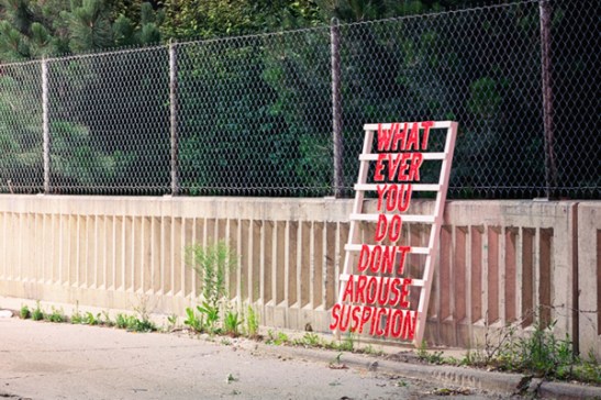 By now, you know about my penchant for conceptual art involving text. However, Joel Ross is unlike most of the artists I’ve featured on this site in that he’s based in (gasp!) Illinois. His installations aren’t in subways or on busy street corners; rather, they mainly take the wonderfully ordinary and refreshingly subtle form of roadside signage.