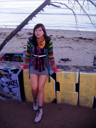 [Hangin’ out at those weird ruins hidden off the coast in IV. Wish I still had those lavender Docs from high school.]