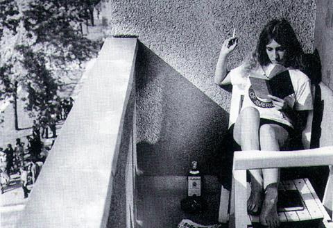 My personal favorite Iveković-moment is this performance piece from ’79, which you can read about in her description below. It basically involves pretending to masturbate while sipping whiskey and reading Elites and Society, as an act of political resistance. She knew the secret communist police were watching her (and probably everyone) while she lounged on her balcony during the President’s ride through the city. Croatia’s patriarchal culture of surveillance was fully revealed when the cops came a-knocking at her door, ordering her to cease her activities, a mere 18 minutes into the act.