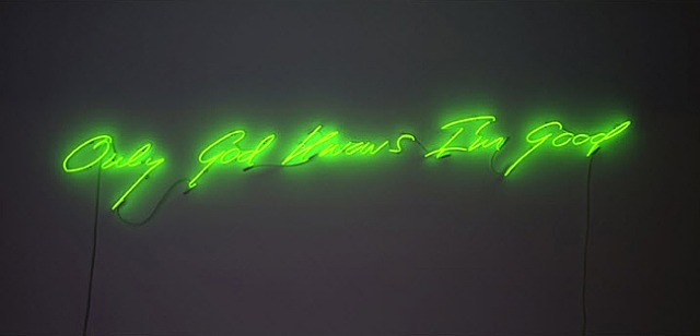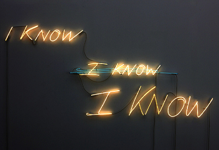 YBA posterchild Tracey Emin makes fabulous art/poetry with neon signs. She was also KNIGHTED by the queen this year.