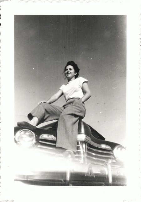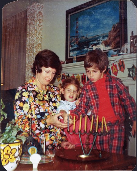 [Sunset: Hanukah, ca. 1973. The dress pattern, the curtains, and the painting of the GG Bridge in the background = PERFECTION.]