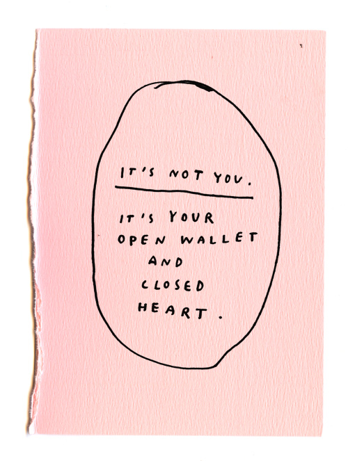 Wednesday, or as we in the corporate world like to refer to it, “Hump Day,” calls for some super-negative, “anti-everything” unspiration from Berlin-based Wasted Rita. I’m particularly fond of the words, but she also does illustrations, which are sometimes web-comic-esque, and sometimes Pettibon-esque, and always hilarious.