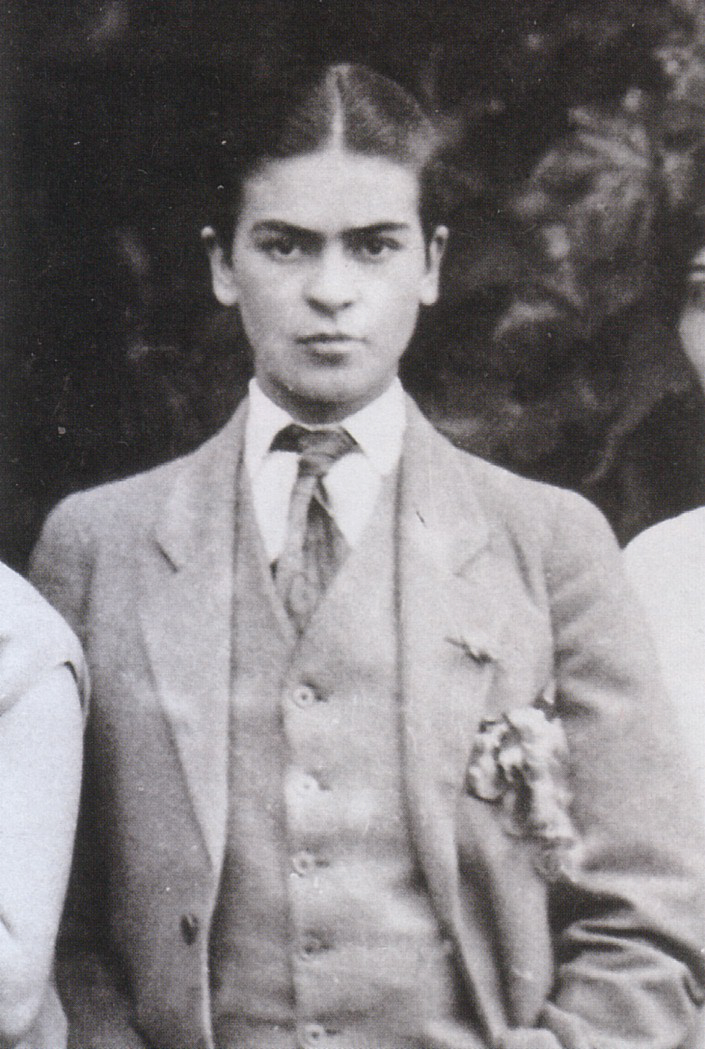 [Frida Kahlo, 1926. It doesn’t get more androgynous than this. Photo, I believe, by her father Guillermo Kahlo.]